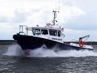 Amphfoils travel to wind farm sites skiing smoothly over the waves avoiding potential sea mammal strikes, then create a stable, safe work platform, at offshore work sites.